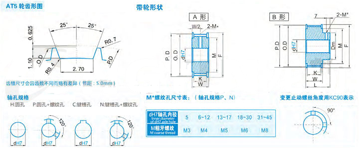 規格 形狀 節徑P.D 外徑O.D 擋邊外徑F 擋邊內徑M 輪轂直徑Dm 內孔dH7